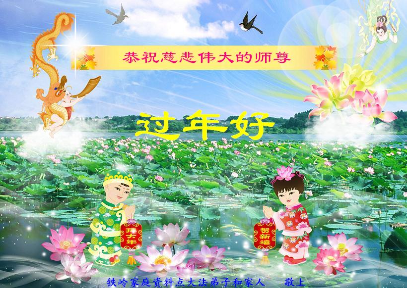 铁岭家庭资料点大法弟子和家人恭祝慈悲伟大的师尊过年好!