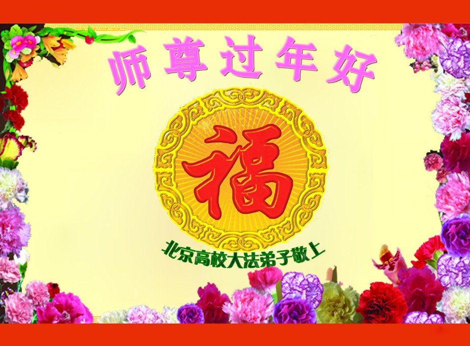 北京高校大法弟子恭祝慈悲伟大的师尊新年快乐!
