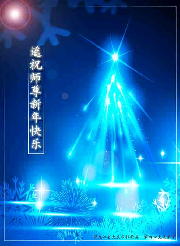 黑龙江省大庆市杜蒙县一家四口大法弟子遥祝师尊新年快乐!