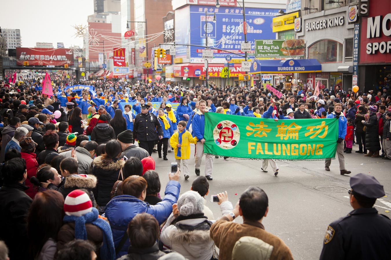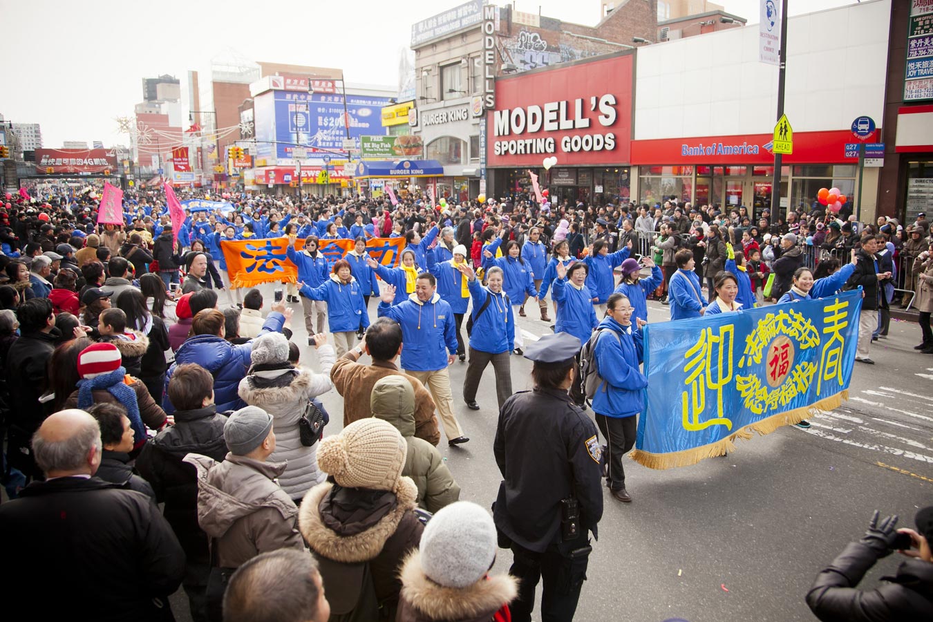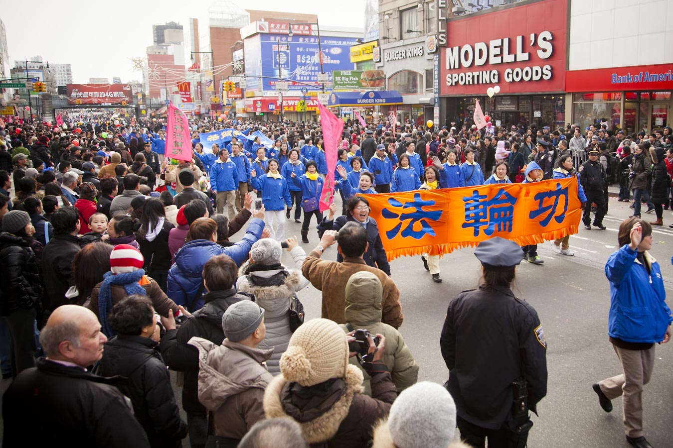 法轮功学员参加纽约法拉盛新年游行,受到热烈欢迎 |