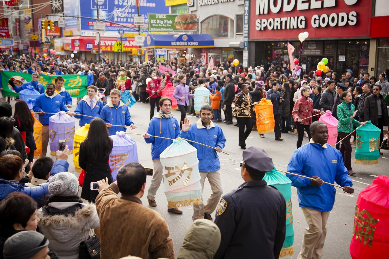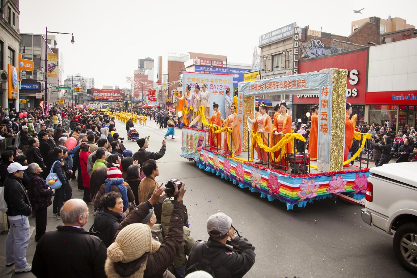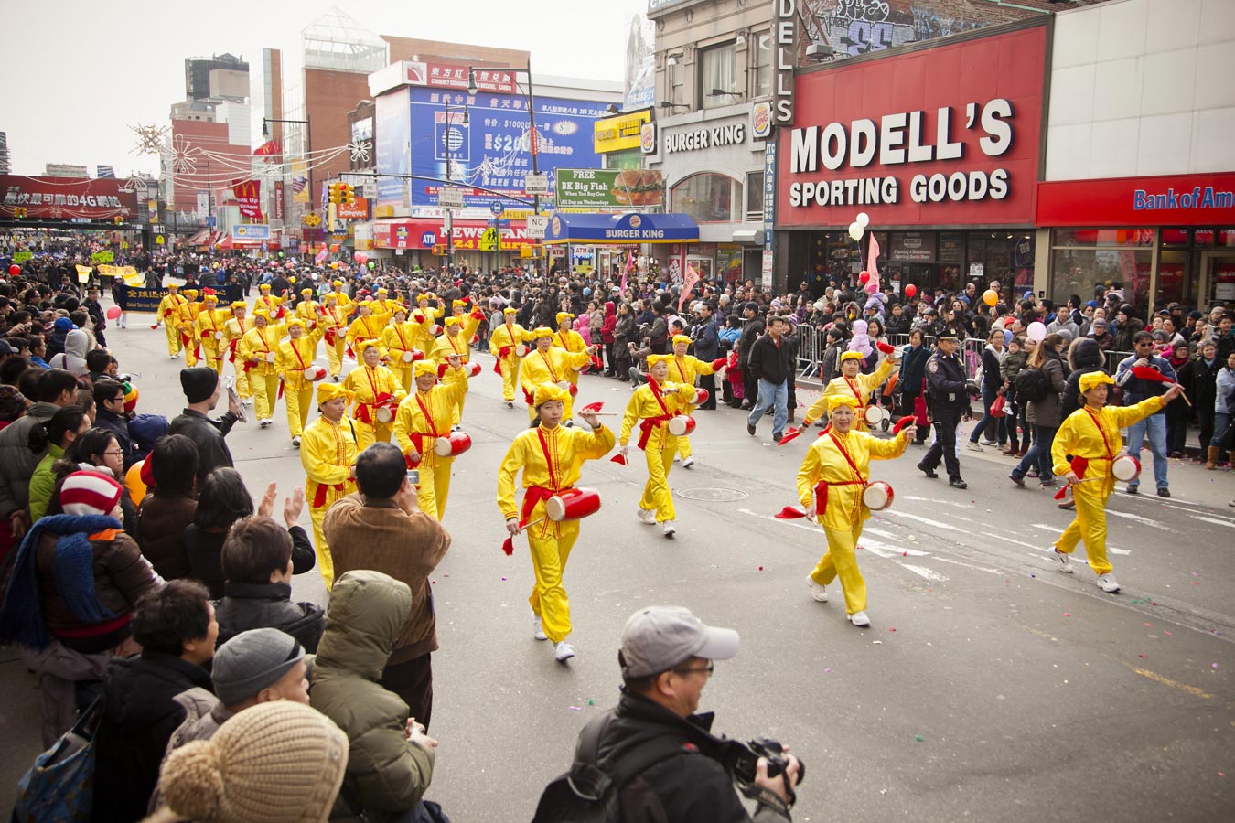 法轮功学员参加纽约法拉盛新年游行,受到热烈欢迎 |