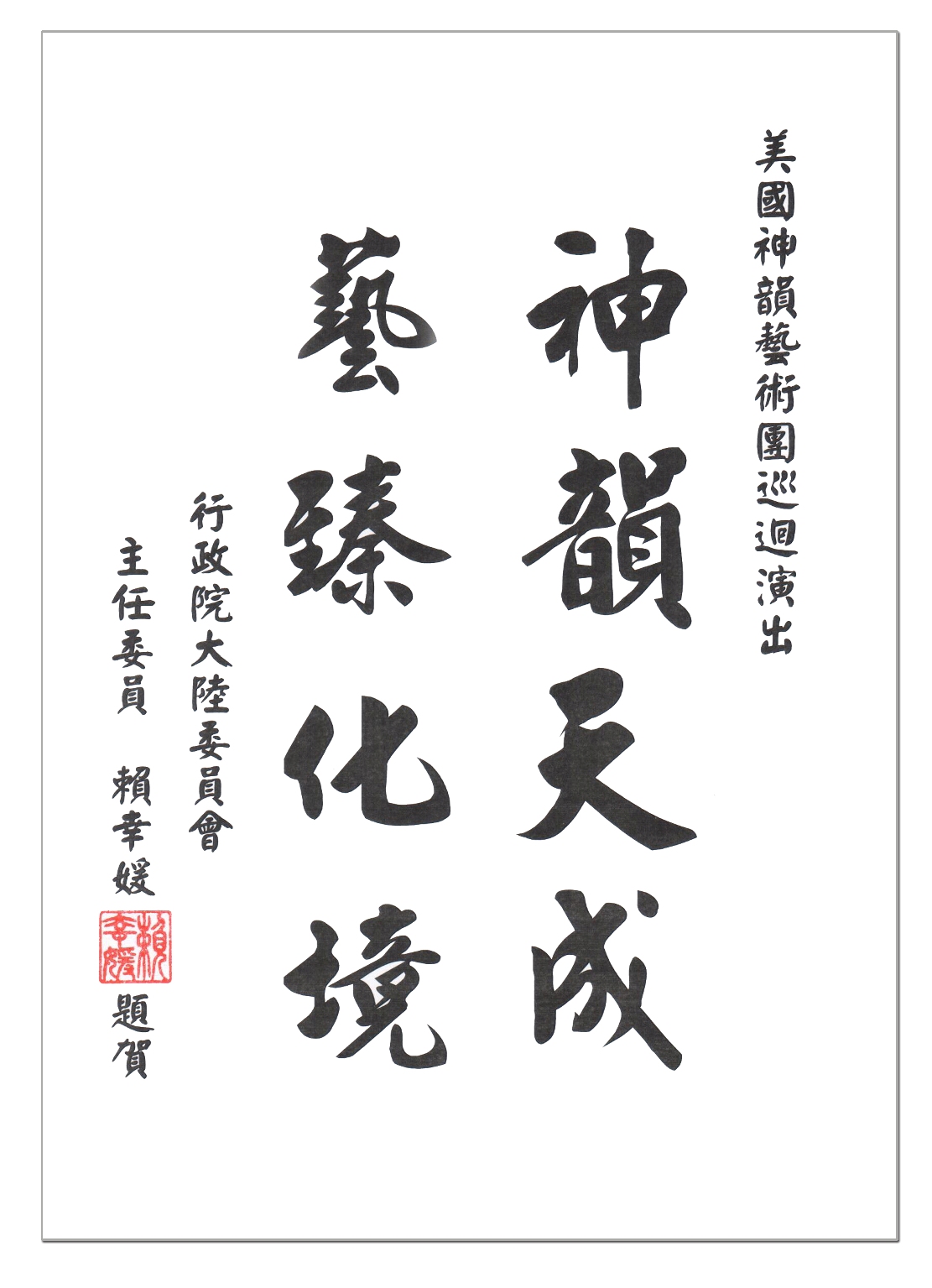 行政院大陆委员会主任委员赖幸媛也赠送“神韵天成、艺臻化境”的贺词 |