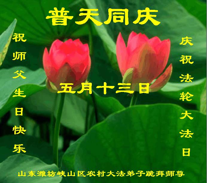 我们今后一定努力做好三件事,放下自己,改变观念,圆容师父所要的,跟上正法進程,做一名合格的大法弟子。让师尊少一份操劳、多一份欣慰。 山东省潍坊峡山区农村大法弟子恭祝伟大慈悲的师父生日快乐!庆祝法轮大法日!