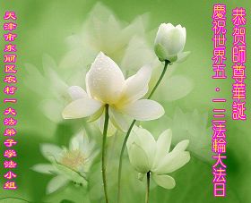 天津市东丽区农村一大法弟子学法小组叩拜师尊生日快乐!庆祝世界法轮大法日!
