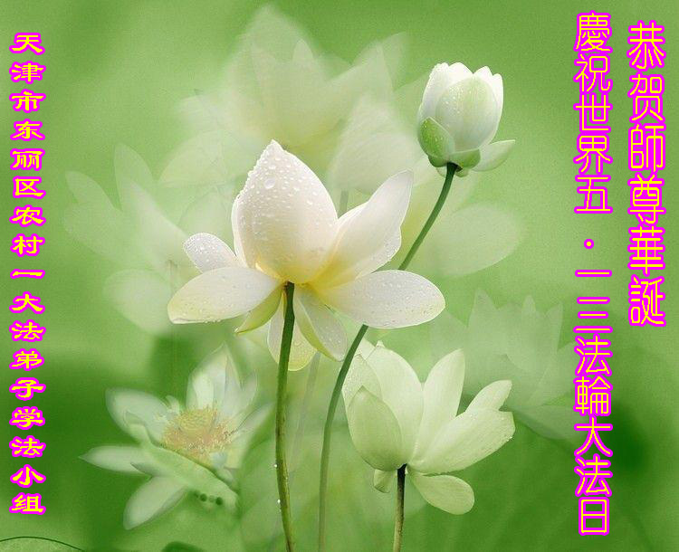愿更多世人明真相、更多世人被救度!!谢谢师尊的洪大慈悲! 天津市农村大法弟子恭祝伟大师尊华诞!同庆五一三世界法轮大法日暨法轮大法洪传二十周年!