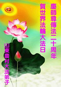 山东省青岛市莱西市农村大法弟子恭祝伟大的师尊洪传大法二十周年!恭祝师尊生日快乐!