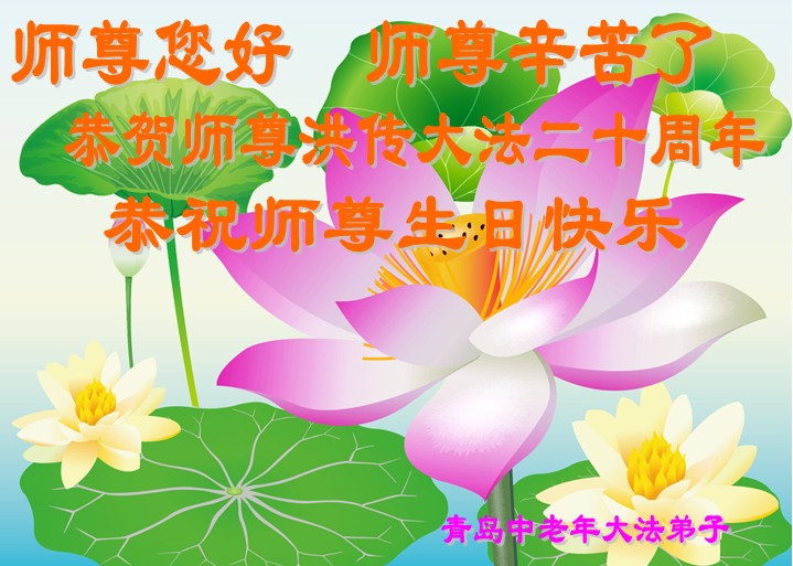 山东省青岛大法弟子恭祝世界法轮大法日!感谢师尊的慈悲救度!