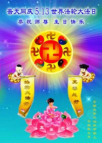 恭祝师尊生日快乐!普天同庆世界法轮大法日! 山东济宁修炼之家一家九口敬祝! 福建省福州市鼓楼区一学法小组大法弟子恭贺师尊华诞暨法轮大法日!