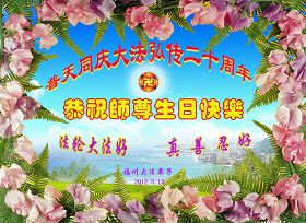 福建省福州大法弟子之家同庆法轮大法洪传二十周年!恭祝师尊生日快乐!
