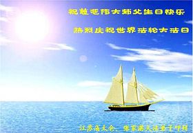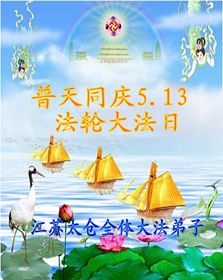 江苏省太仓大法弟子恭祝伟大慈悲的师父生日快乐!热烈庆祝法轮大法洪传二十周年! 山东济南大法弟子恭祝师尊华诞!敬贺世界法轮大法日!