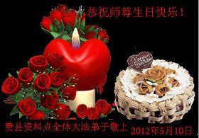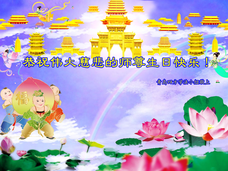 山东省青岛大法弟子恭祝慈悲伟大的师尊生日快乐!