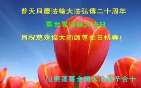 山东大法弟子恭贺法轮大法洪传二十周年!