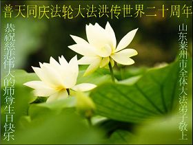 山东茌平全体大法弟子恭祝慈悲伟大的师尊生日快乐!敬贺法轮大法洪传二十周年!