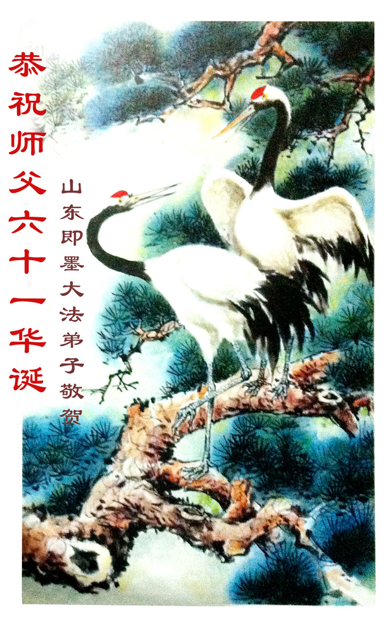 同喜同贺 大法洪传二十年, 亿万众生得福音。 世界法轮大法日, 普天同庆感佛恩。 弟子助师来世间, 救度众生闯难关。 恩师诞辰佛在世, 同喜同贺随师还。 山东省潍坊市临朐县大法弟子恭祝伟大的师尊生日快乐!普天同庆世界法轮大法日!