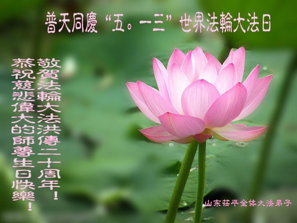 山东菏泽大法弟子净莲恭祝伟大慈悲的师尊华诞暨世界法轮大法日!