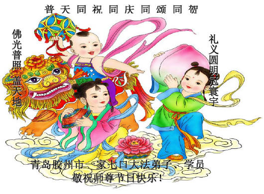山东省德州市平原县一家母子两个大法弟子敬祝至尊至圣的师尊生日快乐!弟子们一定努力做好三件事,救度更多的众生,跟师父一起回家! 山东省青岛市平度市大法弟子祝尊敬的师父生日快乐!