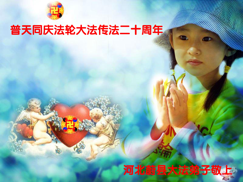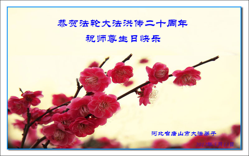 在法轮大法弘传二十周年之际,蠡县全体大法弟子同庆同祝5.13世界法轮大法日!并恭祝师尊生日快乐! 河北省唐山三名大法弟子祝师尊生日快乐!祝法轮大法洪传二十周年!