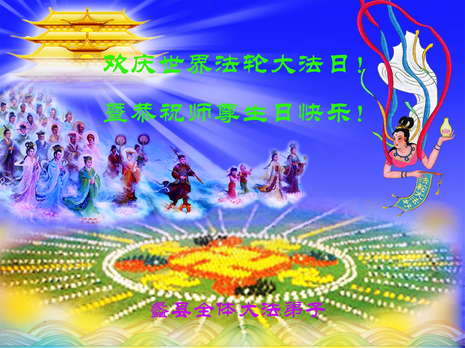 在这个普天同庆的日子里同时恭祝伟大的师父生日快乐! 北京海淀大法弟子恭祝慈悲伟大的师尊生日快乐!