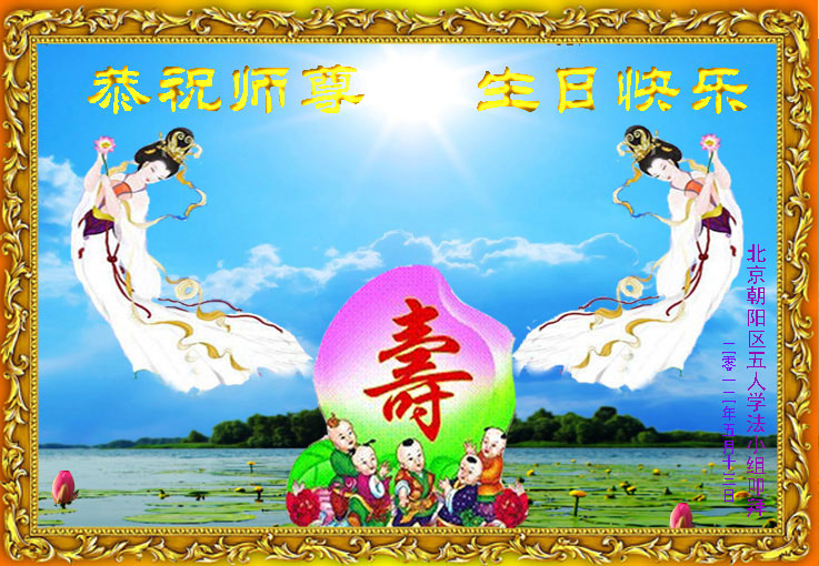 师尊您好! 祝最最伟大师尊生日快乐,弟子知道师尊您为了救度众生和看护弟子吃了无数的苦。弟子们用尽人间的话也无法感谢师尊,我们只有在正法的最后一定听师尊的话,做好三件事,坚定正念,百分之百信师信法,做一个合格的大法弟子,多多救人,完成我们来前的神圣使命,一定做一个让师尊放心的大法弟子。 唐山一学法小组 二零一二年五月五日 北京市房山区、燕山区大法弟子恭祝师尊生日快乐!并恭贺全世界法轮大法日!