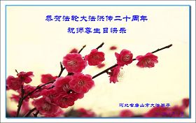 恩师您好!恩师辛苦了!我们一定更加努力的做好三件事,救下更多的世人及众生,让师尊高兴! 河北省唐山市大法弟子恭贺法轮大法洪传二十周年!祝师尊生日快乐!