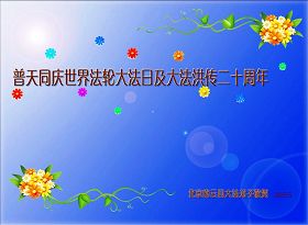 在正法的最后时期,弟子一定要学好法,做好证实法的事,救度更多的众生。 北京市朝阳区大法弟子恭祝师尊生日快乐!恭贺法轮大法世间洪传二十周年!