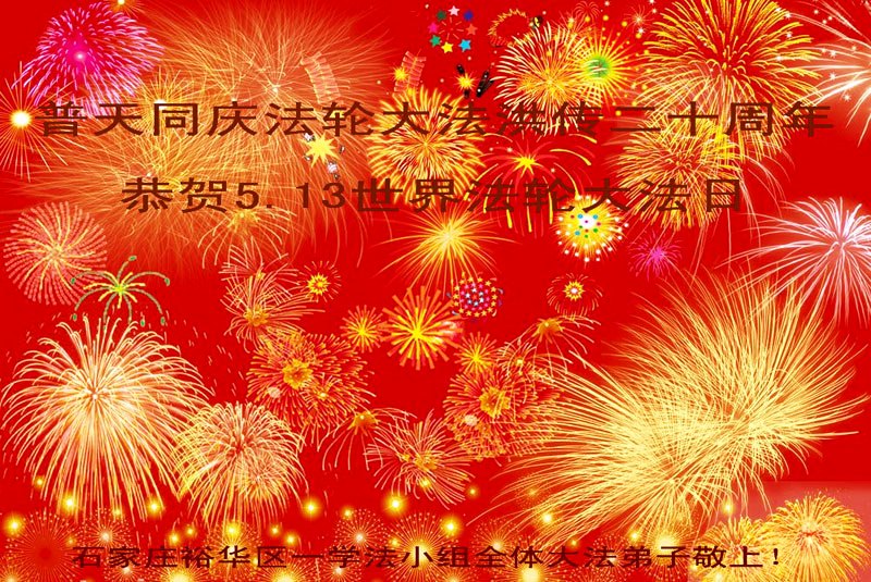 河北省石家庄市裕华区一学法小组全体大法弟子普天同庆法轮大法洪传二十周年!恭贺5.13世界法轮大法日!