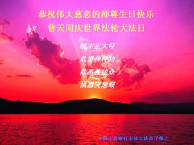 中国大陆电力系统大法弟子恭祝慈悲伟大的师尊生日快乐!恭贺世界法轮大法日暨法轮大法洪传世界二十周年!