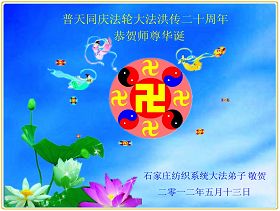 河北省石家庄纺织系统大法弟子祝贺法轮大法洪传二十周年!