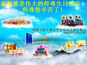 四川省成都飞机工业公司全体大法弟子恭祝慈悲伟大的师尊生日快乐!