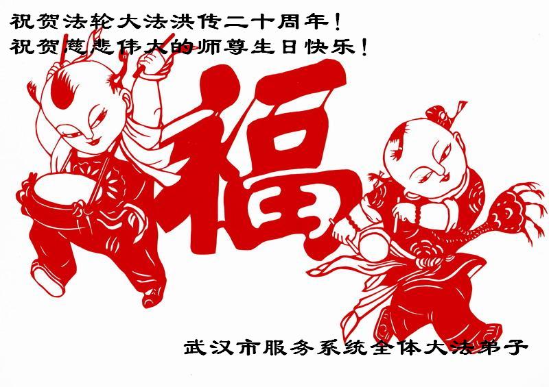 湖北省武汉服务系统全体大法弟子祝贺法轮大法洪传二十周年!祝贺慈悲伟大的师尊生日快乐!