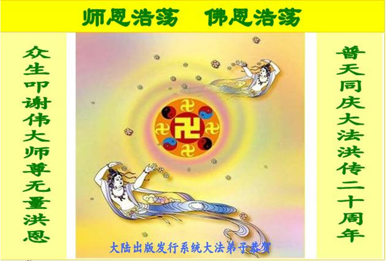 大陆出版发行系统的大法弟子恭贺法轮大法洪传二十周年!叩谢伟大师尊的救度之恩!