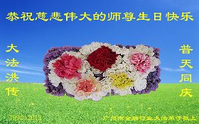 广东省广州金融行业大法弟子恭祝慈悲伟大的师尊生日快乐!普天同庆大法洪传!