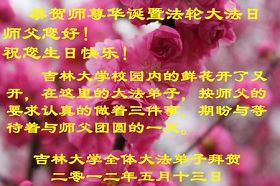 祝师尊生日快乐! 吉林大学全体大法弟子贺师尊华诞暨世界法轮大法日!