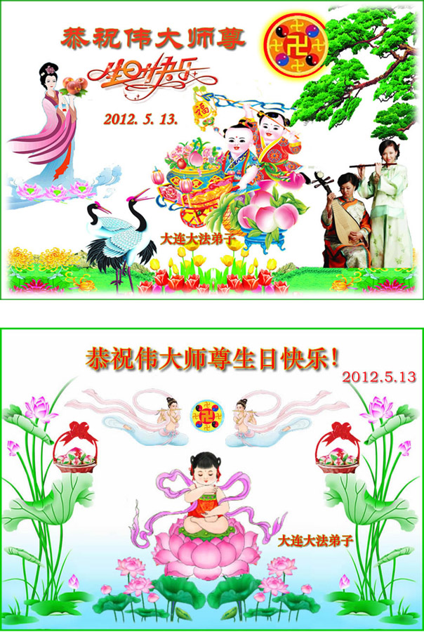 过去是教师, 没有真知识。 教的党文化, 害人又害己。 学法明真理, 内找实修己。 去掉人执着, 无私正念起。 弟子传真机, 末劫救人急。 做好三件事, 助师正天地。 恭贺师诞辰, 叩首拜尊师。 大连大法弟子 2012.5.7 河北唐山教育系统大法弟子恭贺法轮大法洪传二十周年!