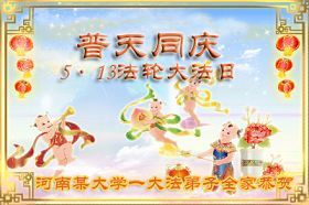 河北省保定市某高校大法弟子祝贺五、一三世界法轮大法日暨大法洪传二十周年!