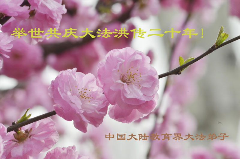 大陆教育界大法弟子普天同庆法轮大法洪传二十周年!