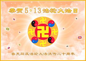 【明慧网二零一二年五月十一日】二十年前的五月,李洪志师父在中国长春将法轮大法公开传出于世,二十年后的今天,法轮大法洪传全球,亿万修炼者在大法“真善忍”的指导下道德升华,获得身心健康。十三年来,每年的五月十三日,世界各地的法轮大法弟子,都向明慧网寄来贺卡贺词,庆祝“世界法轮大法日”,恭贺师尊华诞。以下是今年的部份贺卡集锦。
