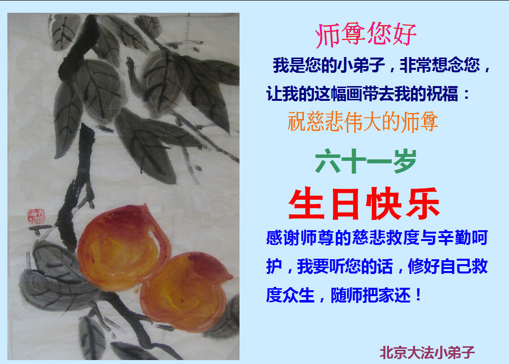 问候师父您辛苦了!我啥时候能见到您? 北京大法弟子及小弟子恭贺慈悲伟大的师尊生日快乐!普天同庆法轮大法洪传世间二十周年!