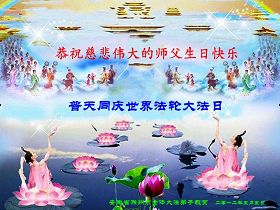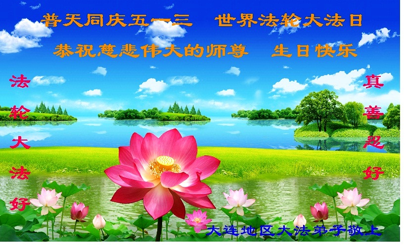 辽宁省大连大法弟子恭祝师尊生日快乐,祝贺世界法轮大法日!