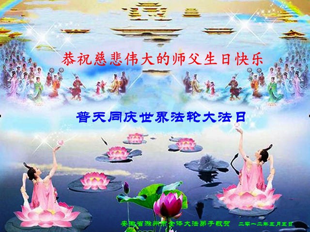 安徽滁州大法弟子恭祝师尊生日快乐!庆世界法轮大法日