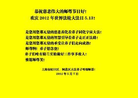 2012年5月5日 黑龙江省佳木斯大法弟子恭祝师尊生日快乐!