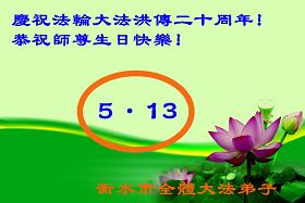 天津武清区大法弟子恭贺师尊生日快乐!庆祝大法洪传二十周年!庆祝5.13法轮大法日!