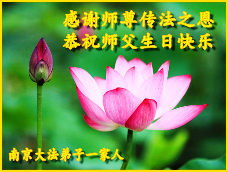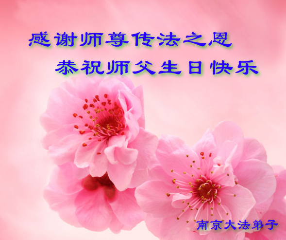 江苏省南京大法弟子感谢师尊传法之恩!恭祝师父生日快乐!