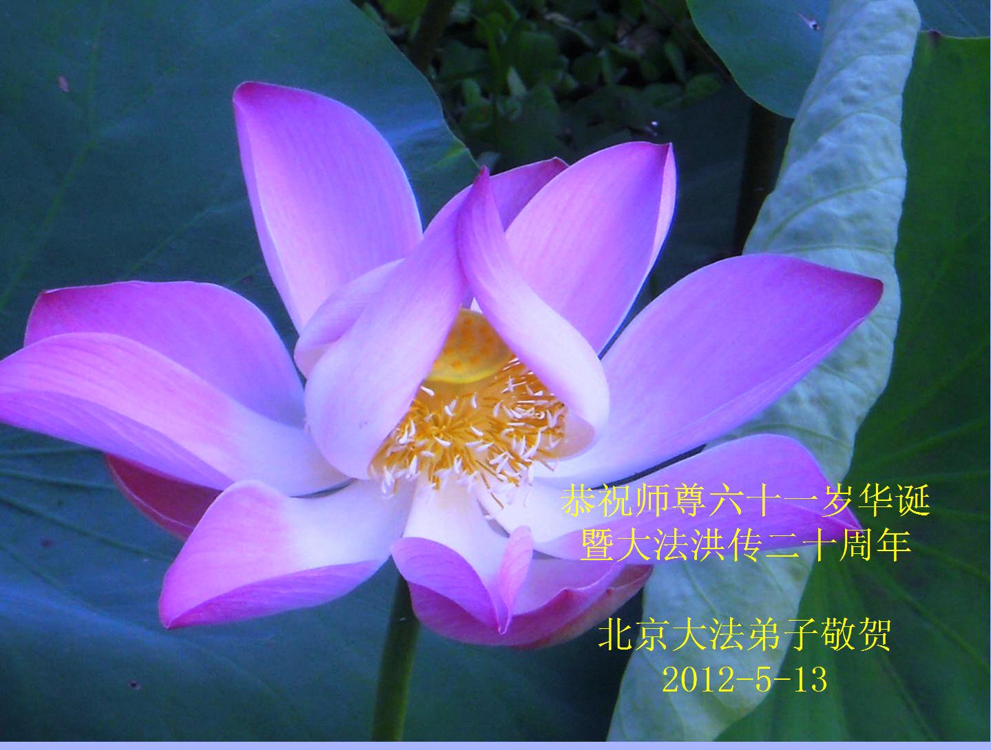 我们有幸成为师父的弟子,一定要认真学好法,做好三件事,坚定信师信法,讲真相,多救人,走好最后的路! 北京大法弟子恭祝师尊岁华诞暨大法洪传二十周年!