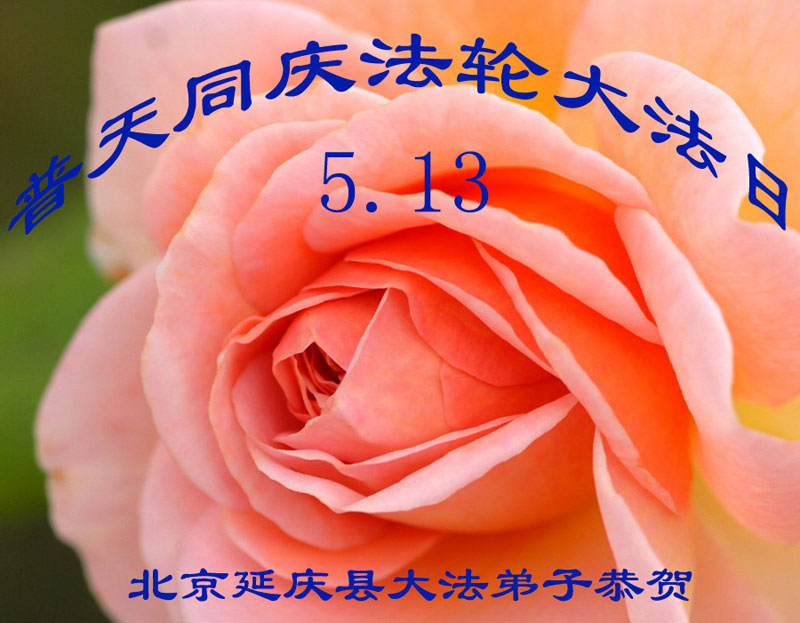 感恩圣王来人间 佛恩浩荡连着天 真人真体金身显 众生同享慈威缘 法中归正民心愿 普天同庆乐大典 祝愿师尊乐无限 北京延庆县大法弟子庆祝世界法轮大法日!