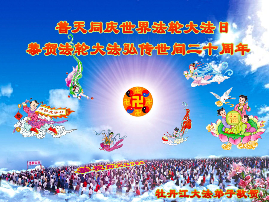 黑龙江省牡丹江大法弟子恭贺大法弘传二十周年