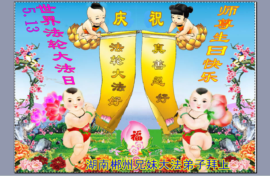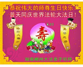 湖南郴州兄妹大法弟子祝师父生日快乐