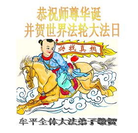 我们一定要多学法,多救人跟师父回家。 大陆大法弟子贺法轮大法日暨师尊华诞