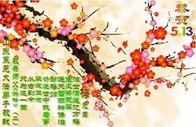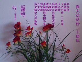 贺大法洪传二十周年 花枝俏 春意闹 大法洪传二十年到 大法徒 紧随师 助师正法救度众生 去执着 清邪恶 勇猛精進金刚不变 邪*党-崩 众生变 历史新纪元开新篇 中国磐石母女大法弟子贺 二零一二年五月六日 大陆大法弟子恭祝慈悲伟大的师父生日快乐!