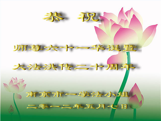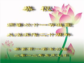 江苏省南京一学法小组大法弟子恭祝师尊华诞暨大法洪传二十周年!